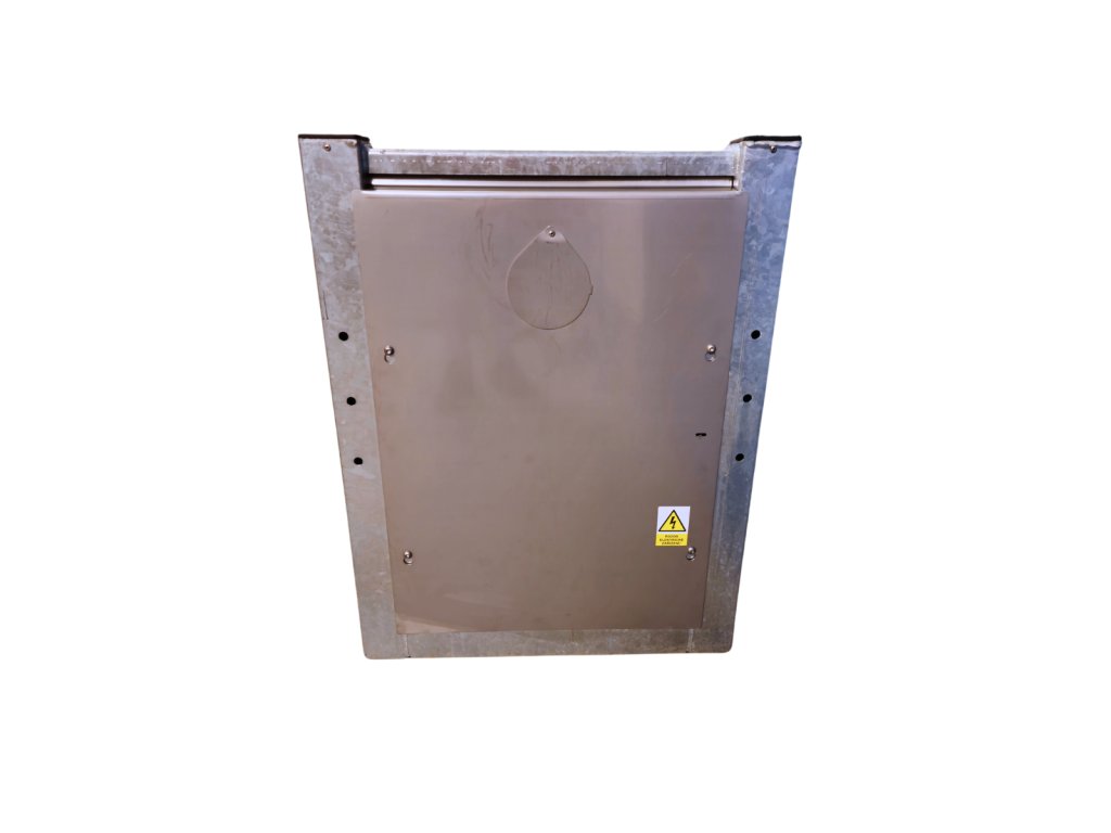 Ochrana proti zamrznutí je u tohoto typu žlabu zajištěna samoregulačním topným kabelem, který je umístěný v prostoru mezi vlastním žlabem a pláštěm. Napojení přívodu vody i elektriky je v čelní skříni a je usnadněno rozšířeným krytem u skříně.